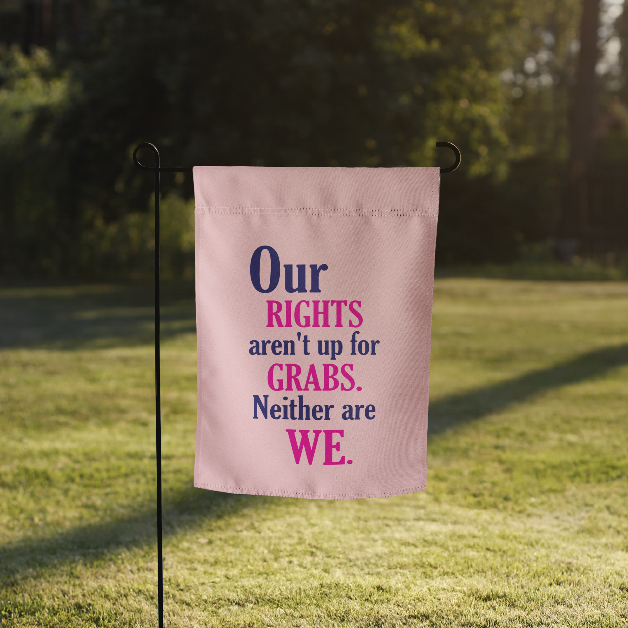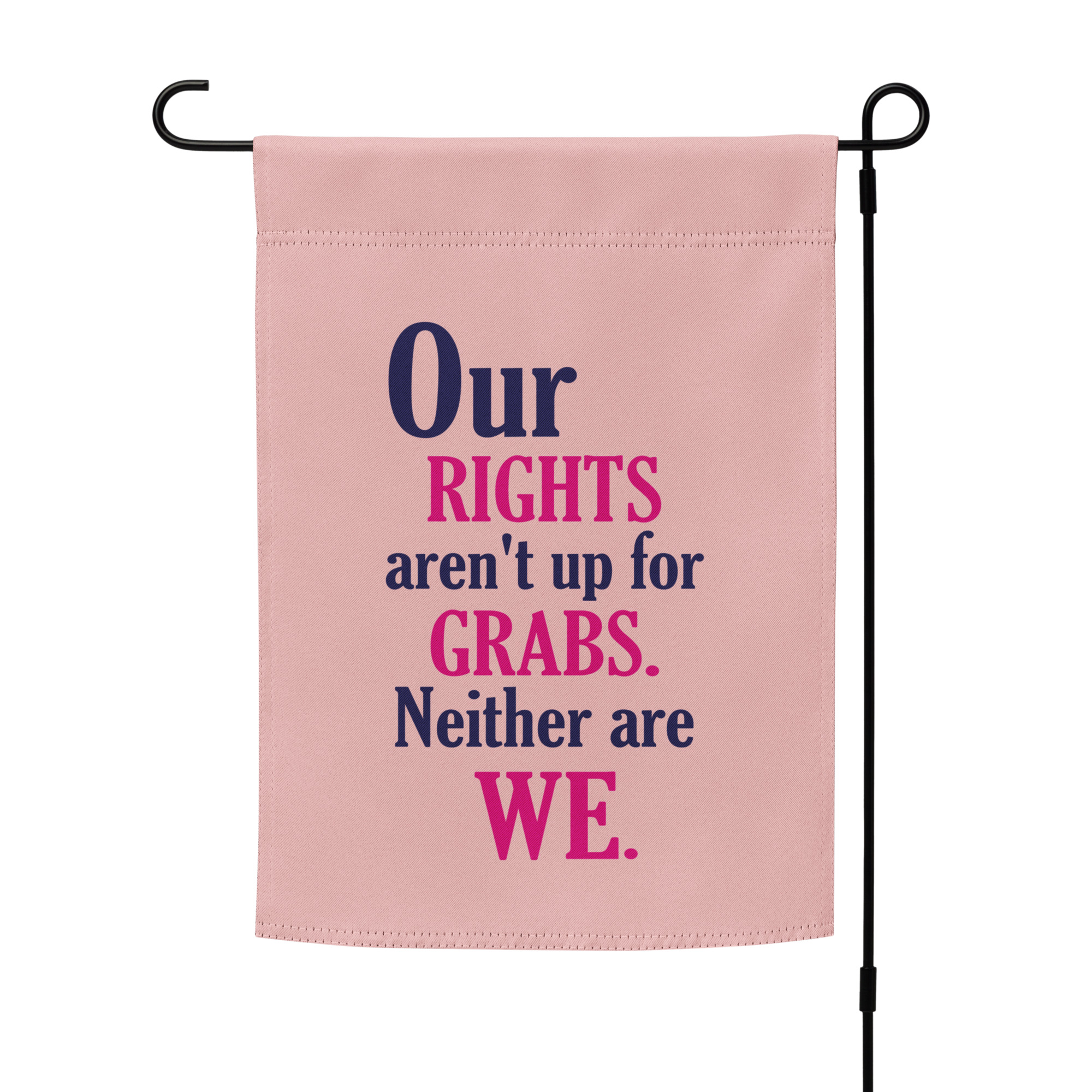 Add a pretty but powerful statement to your outdoor space with the Blush Pink Our Rights Garden Flag — a reminder to advocate for women’s rights, safety, and equality. Whether you’re creating a vibrant entryway, expressing solidarity for women’s rights, or simply adding color to your garden, this flag is a great way to display your values.