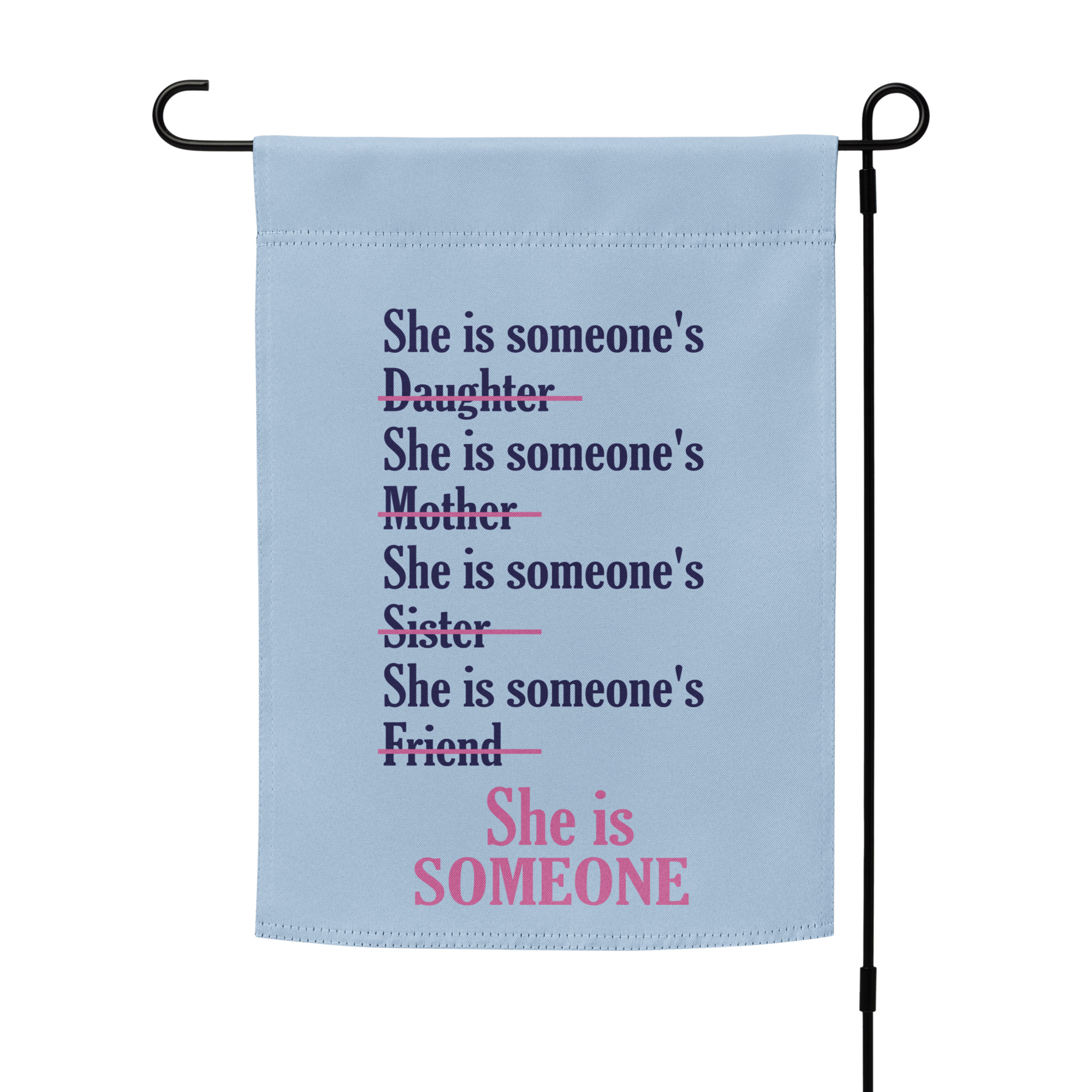 Add a touch of meaning and beauty to your outdoor space with the Hydrangea Blue She is Someone Garden Flag — a gentle yet powerful reminder that every woman matters. Whether you’re creating a welcoming entryway, expressing solidarity for women’s rights, or simply adding color to your garden, this flag is a perfect way to share a message of dignity, love, and empowerment. The soft hydrangea blue paired with the bold She is Someone message brings both elegance and purpose to any setting.